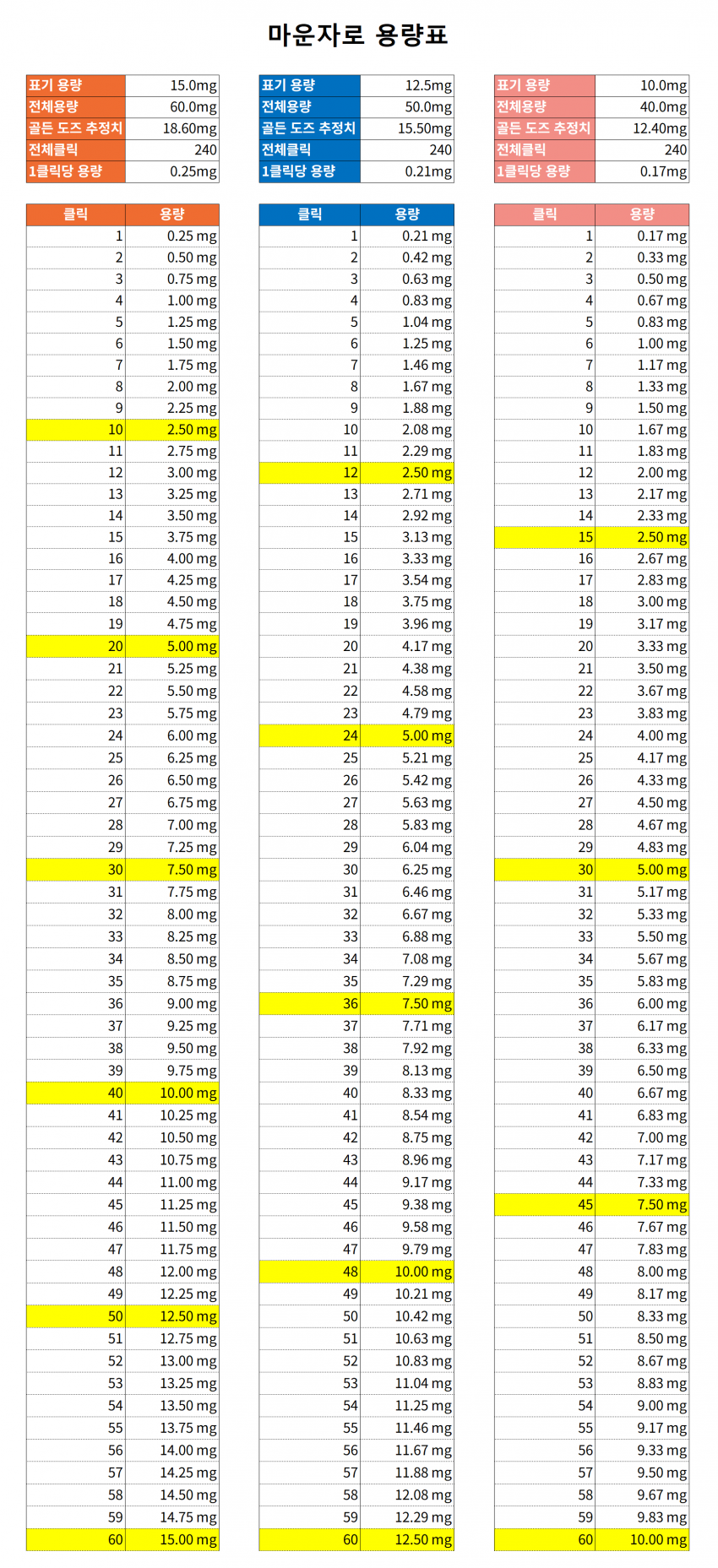 15마운자로로 5미리 맞을시 20클릭 돌리면 됩니당!